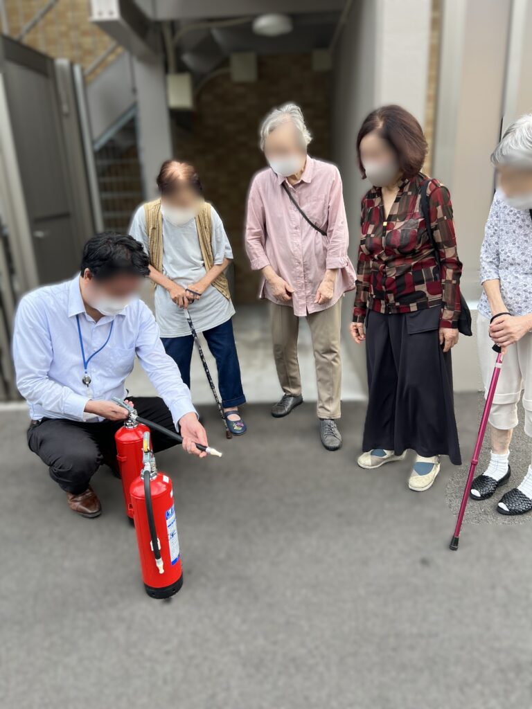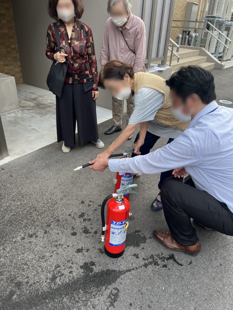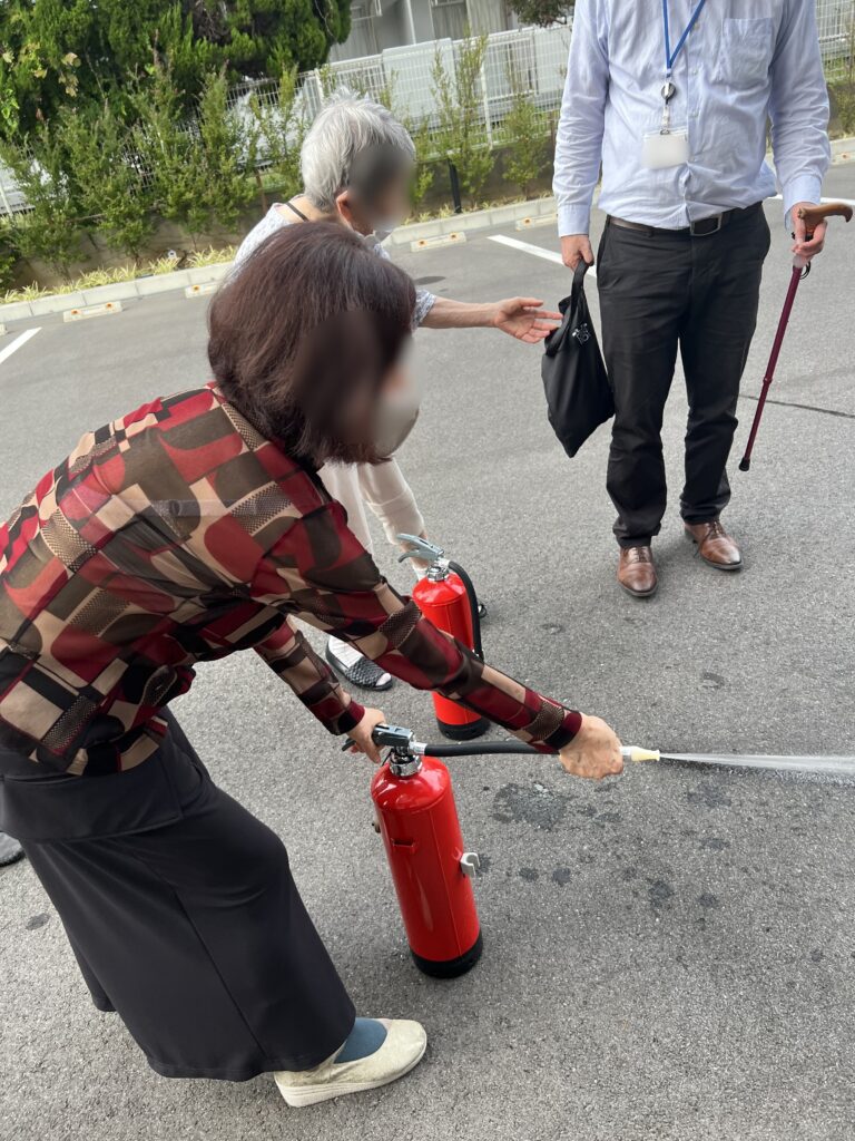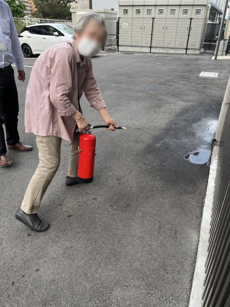 また、消火器を使って消火訓練を行いました。
