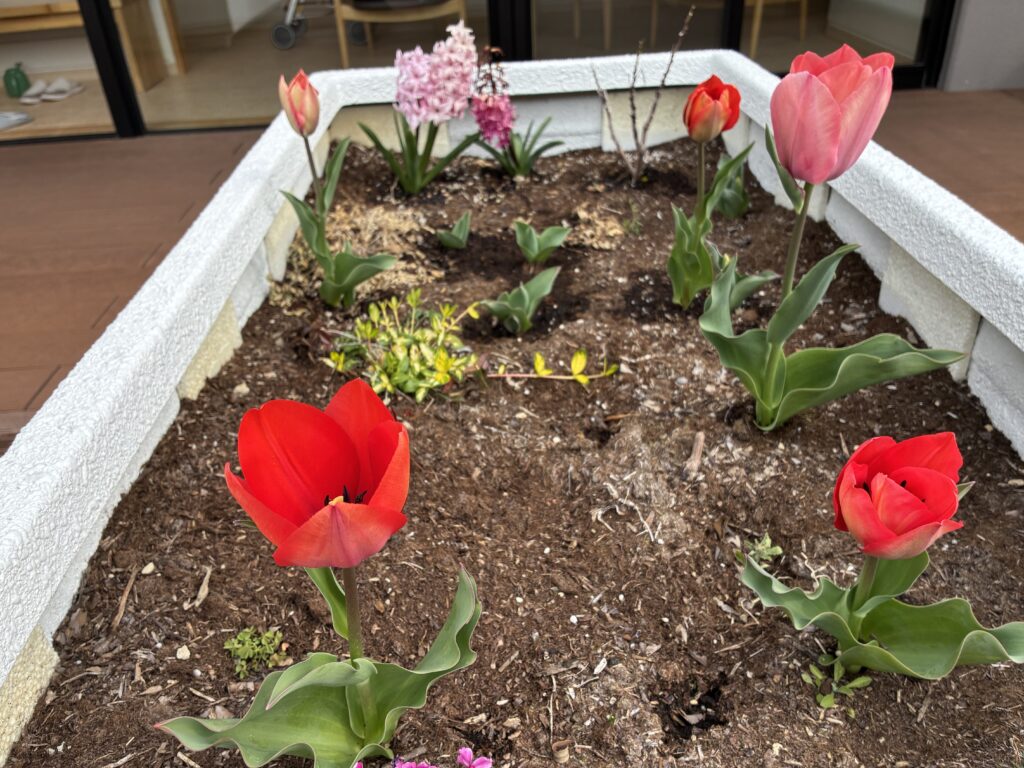 桜町中学校の皆様からいただいたお花も綺麗に咲きました!