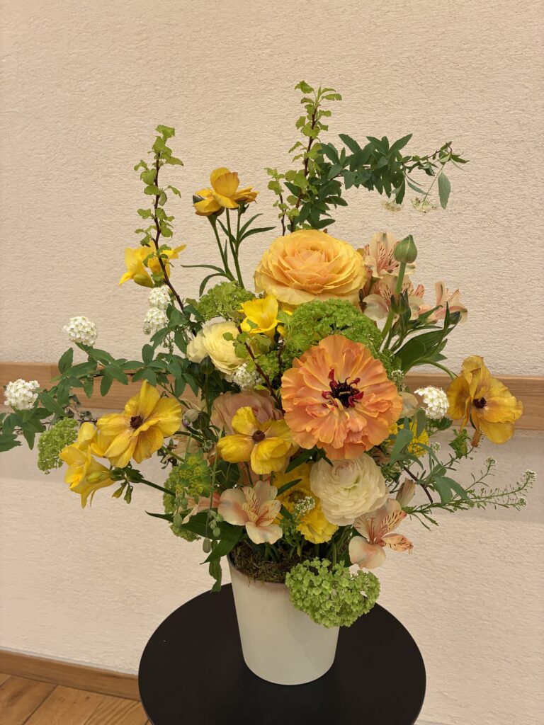 隔週でお花屋さんが活けて下さるお花です。黄色が鮮やかで綺麗です。