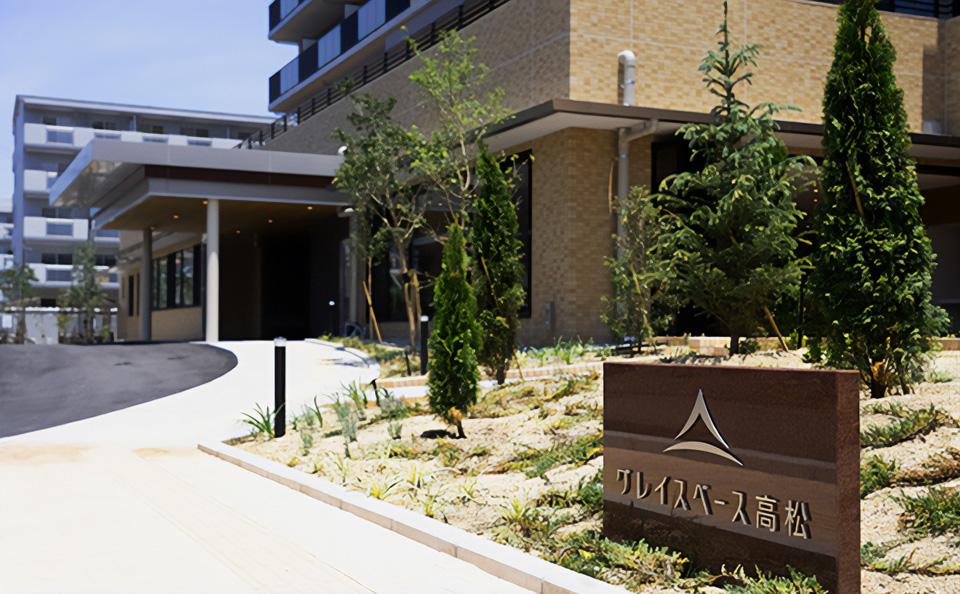 グレイスベース高松は、居住者だけでなく地域の方が気軽に立ち寄ったり、利用できる地域交流室や屋外デッキテラスを設けました。